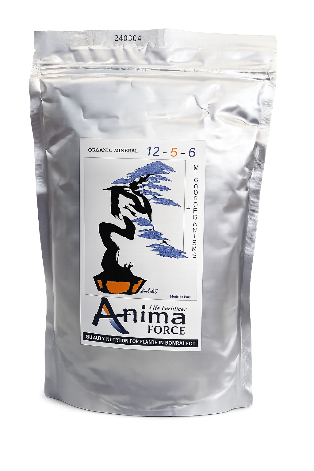 ANIMA FORCE 12.5.6 è un concime adatto per concimazione di piante in fase pre bonsai, che hanno bisogno di una spinta vegetativa maggiore.