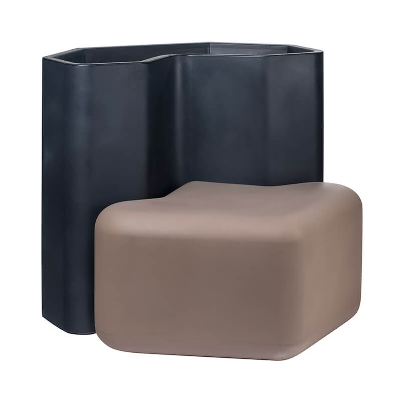 Fioriera e seduta in resina termoplastica per l’arredo urbano. Design by Maria Luisa Malpelo.